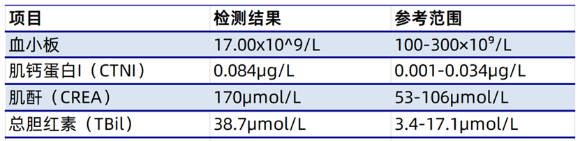 12月24日病情进展:出现心前区疼痛,恶心呕吐,意识躁动、问话不答,急诊转入我院。入院查体:高热体温;神经系统查体示躁动状态,双侧瞳孔等大等圆,对光反射迟钝;皮肤黏膜可见散在瘀点,巩膜轻度黄。